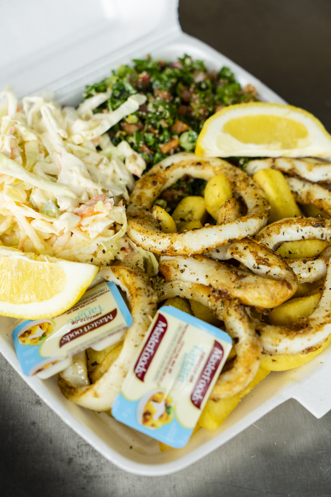 The Calamari Souvlaki is one dish that consistently earns rave reviews. Tender, perfectly seasoned calamari skewered and grilled to golden perfection makes for a standout appetizer or main. Pair it with a side of chips or a fresh salad, and it’s hard not to find yourself savoring every bite. For those craving something more substantial, the Steak Sandwich with the Lot is a true crowd-pleaser. Packed with juicy, flame-grilled steak, fresh vegetables, and all the classic toppings, it’s a generous meal that showcases the restaurant’s commitment to quality and flavor.