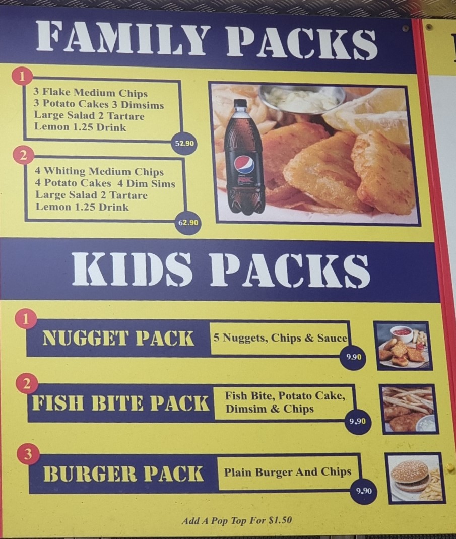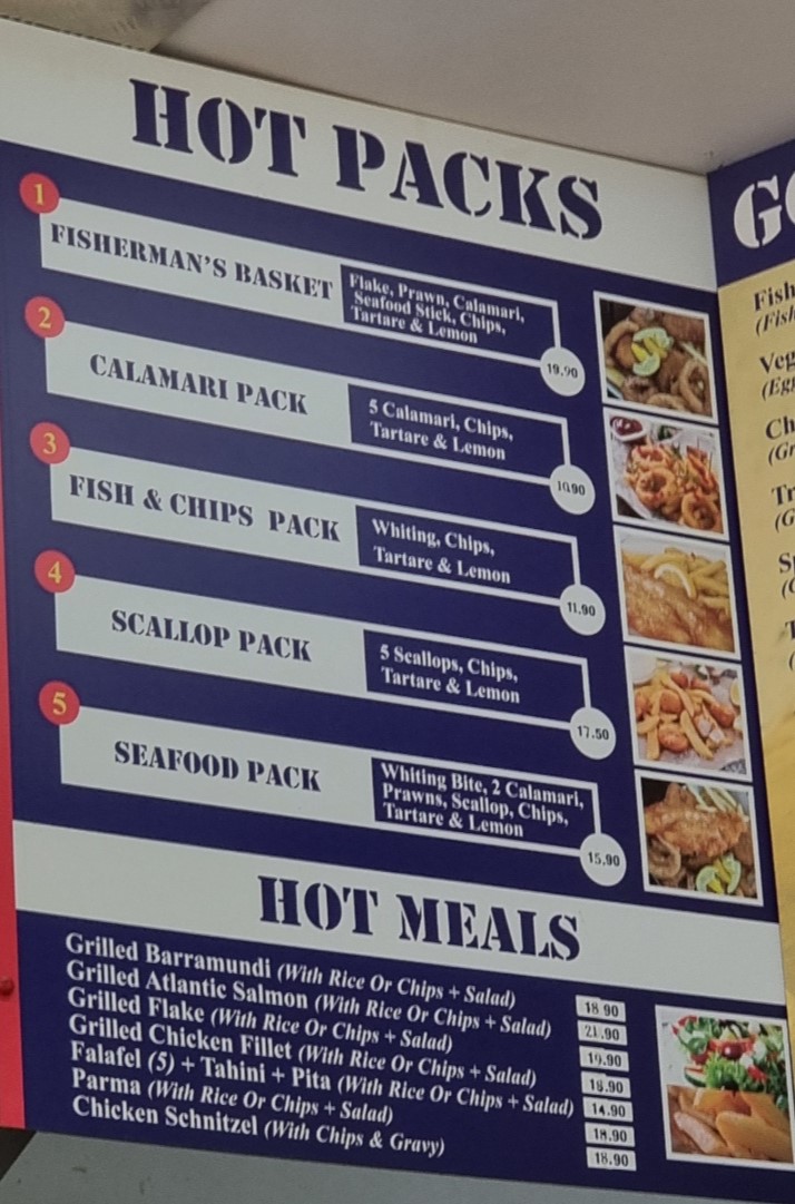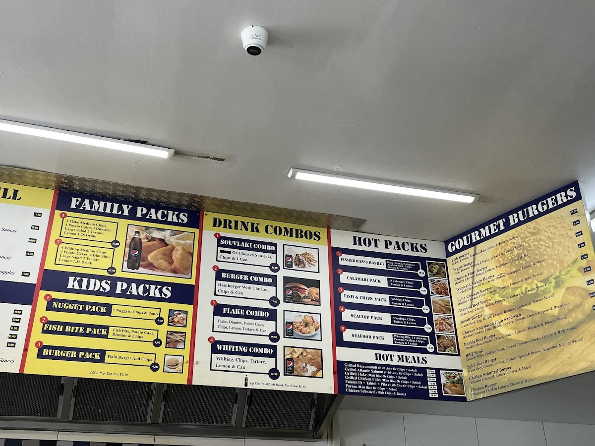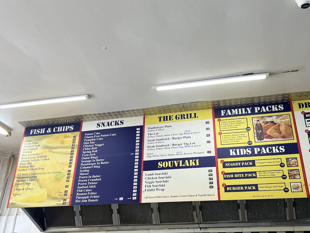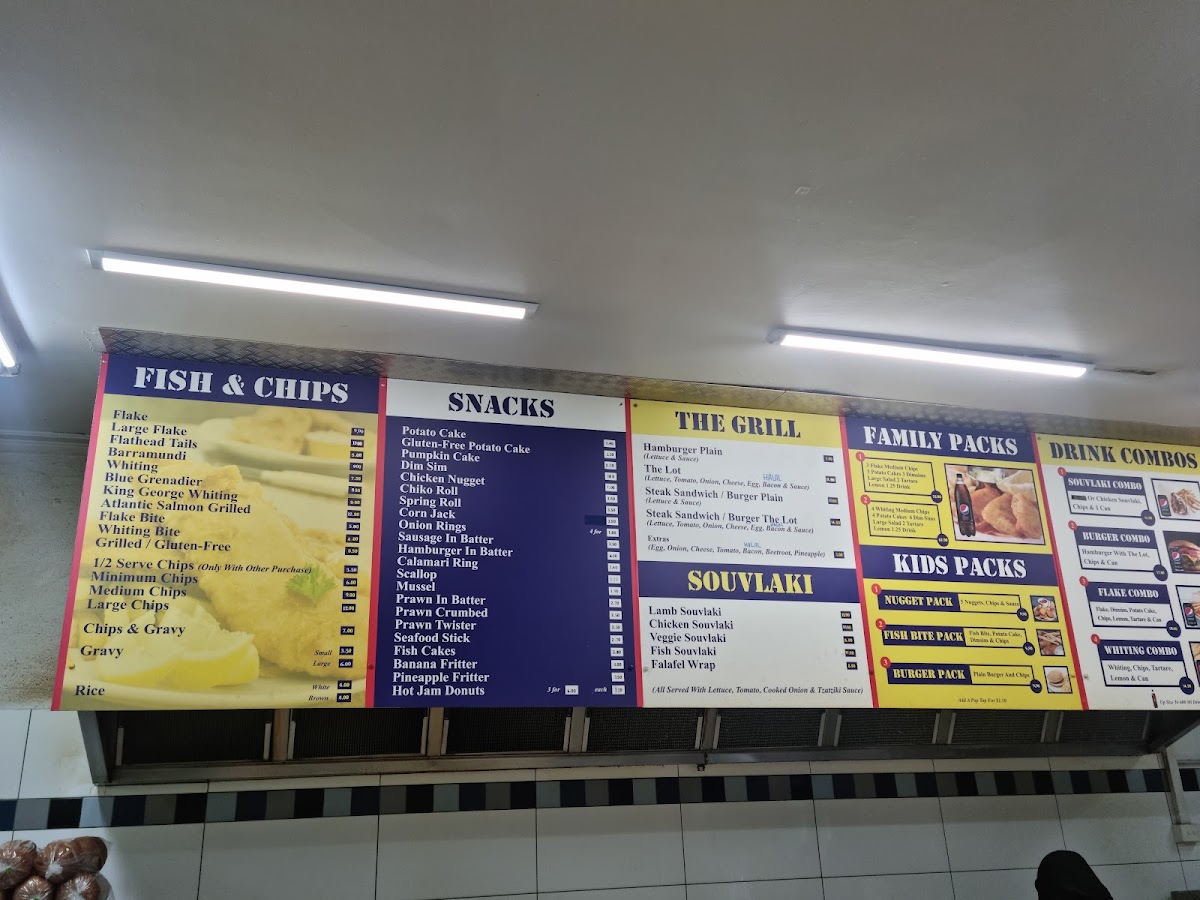 Overall, the menu at Jim’s Seafood And Grill offers a satisfying variety that caters to both classic takeaway lovers and those seeking something a bit more diverse. The Fish Burger, Veggie Burger, and Chicken Fillet Burger, alongside options like the Tropical Chicken Burger and Spicy Chicken Burger, provide a solid gourmet burger selection, while hearty hot packs such as the Fisherman’s Basket, Calamari Pack, and Fish & Chips Pack deliver great value for seafood fans. The hot meals stand out with choices like Grilled Barramundi, Grilled Atlantic Salmon, and Grilled Chicken Fillet, complemented by lighter options like Falafel (5) + Tahini + Pita. Combo deals including the Souvlaki Combo, Burger Combo, and Flake Combo make it easy to enjoy a complete meal, and quick bites like Potato Cake, Dim Sim, and Chicken Nugget are perfect add-ons. Traditional fish selections such as Flake, Flathead Tails, and Whiting anchor the menu, while the grill section with the Hamburger Plain, The Lot, and Steak Sandwich adds a classic Aussie touch. With kid-friendly options like the Nugget Pack and Fish Bite Pack, plus a variety of souvlakis including Lamb Souvlaki and Chicken Souvlaki, the menu feels well-rounded, affordable, and designed to satisfy a wide range of tastes.